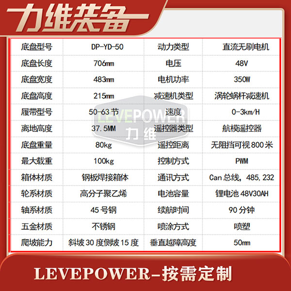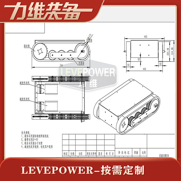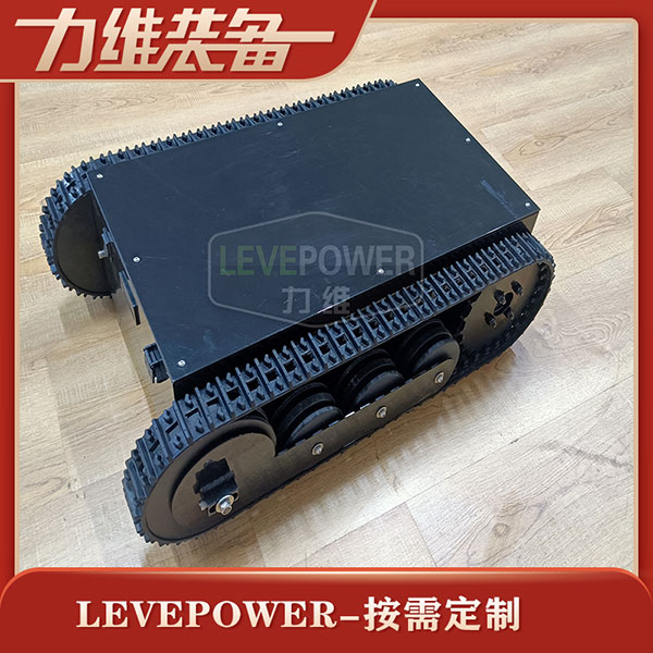 橡膠履帶底盤(pán)長(zhǎng)706mm,橡膠履帶底盤(pán)寬483mm,橡膠履帶底盤(pán)高215mm,無(wú)線(xiàn)航模遙控履帶底盤(pán)采用48v350W直流無(wú)刷永磁電機(jī),渦輪蝸桿減速機(jī)動(dòng)力更強(qiáng),轉(zhuǎn)彎靈活,操控簡(jiǎn)單。履帶底盤(pán)電池采用48V30AH鋰電池續(xù)航時(shí)間更長(zhǎng)。履帶底盤(pán)箱體采用鋼板焊接而成,輪系采用高分子聚乙烯,履帶底盤(pán)整體重量輕,耐磨性強(qiáng)。